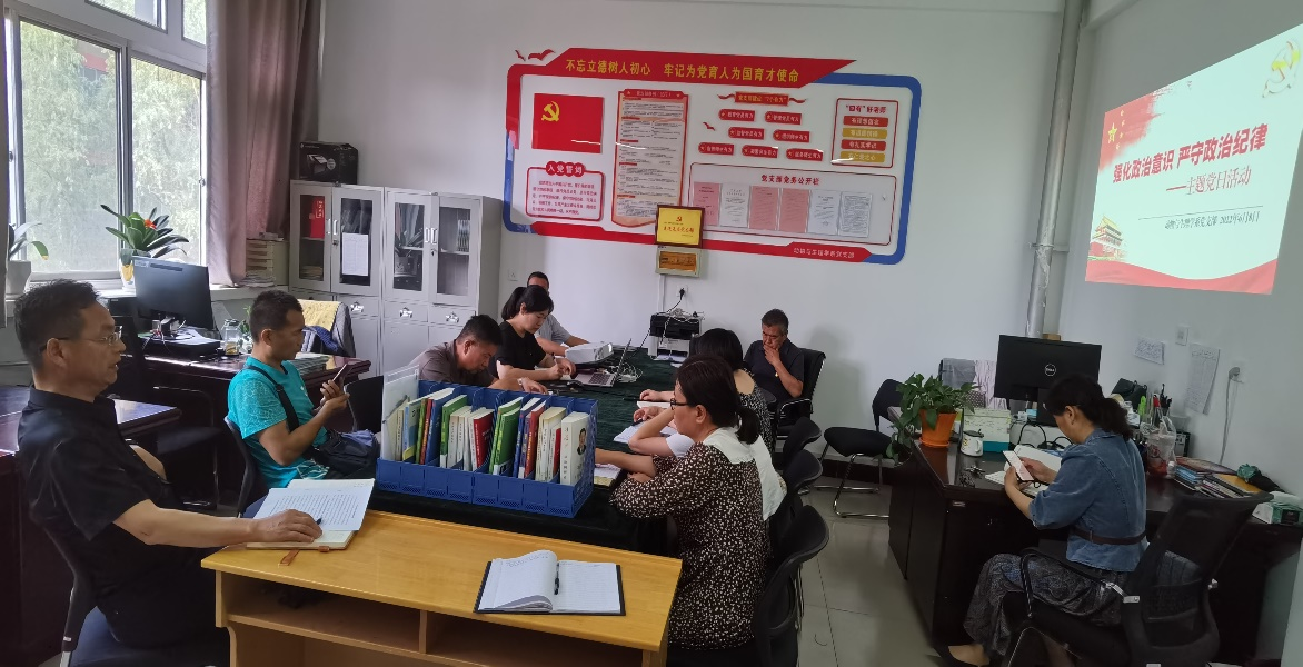 在随后的学习中,各支部书记带领党员学习了习近平总书记关于加强党的政治建设的重要论述、观看了警示教育纪录片《零容忍》第一集《不负十四亿》,党员们结合自身学习工作实际交流了学习体会。大家表示,要不断锤炼党性,时刻用入党誓词约束自己,用党员标准严格要求自己,对党忠诚,牢记职责,将守纪律与做好教学、科研、团队建设等各项工作结合起来,以勇于担当、勇于拼搏的精神更加努力地工作。巡察组组长闫蓉同志和副组长马玉玲同志分别交流了学习体会,充分肯定了此次主题党日活动形式多样新颖、内容充实具体,并指出加强党的政治建设是一项重大的政治任务,作为基层党组织要全面贯彻执行党中央的决策部署,作为党员教师,要切实增强政治意识、身份意识和责任意识,服从组织、严守法纪。在宁夏回族自治区第十三次党代会召开之际,以饱满的工作热情,立足本职岗位争创一流业绩,以实际行动迎接大会胜利召开。