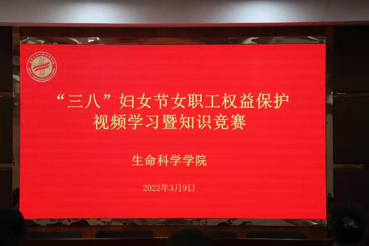 全体女教职工集中观看了妇女权益保护宣传视频。视频深入浅出地讲述了女性所享有的政治权利、文化教育权益、财产权益、人身权益、婚姻家庭权益、法律责任等几个方面的内容,以案说法,号召广大女性积极依法维权,学会使用法律武器保护自己。视频学习结束后,全体女教职工参加了妇女权益知识竞赛,竞赛以闭卷测试形式进行。