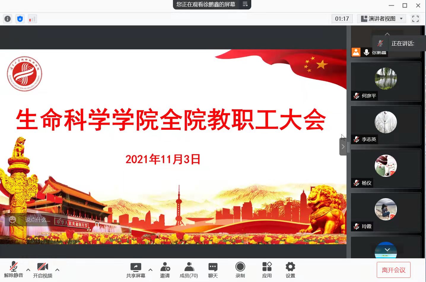 通过腾讯会议召开线上全院教职工大会,安排部署近期工作,会议由党委书记李东宁主持。