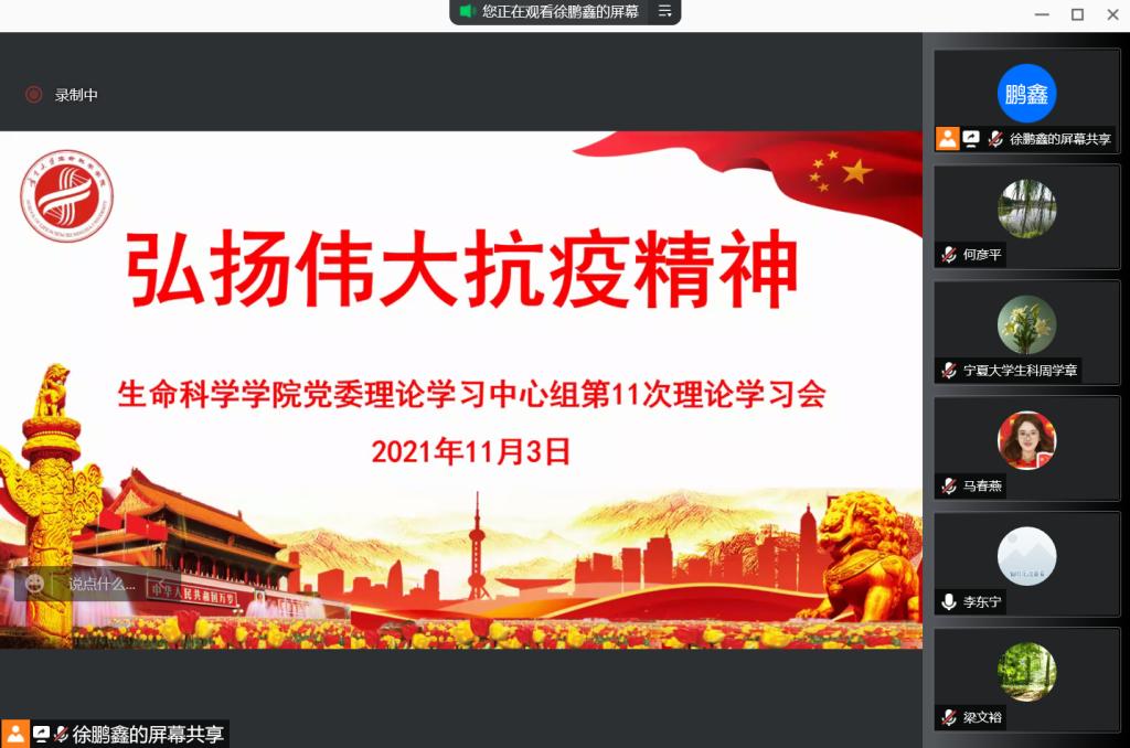 召开“弘扬伟大的抗疫精神”党史学习教育专题学习暨第11次党委理论学习中心组线上学习会,会议由党委书记李东宁主持,全体理论学习中心组学习成员参加。
