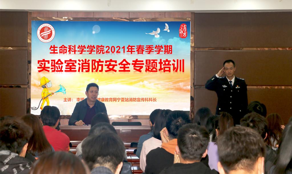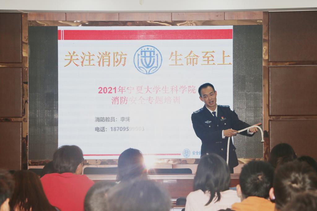 于知本楼二楼报告厅室举办2021年度春季学期实验室消防安全专题培训。本次培训特邀全国安全健康教育网宁夏站消防宣传科科长李博主讲,院党委副书记何彦平主持。