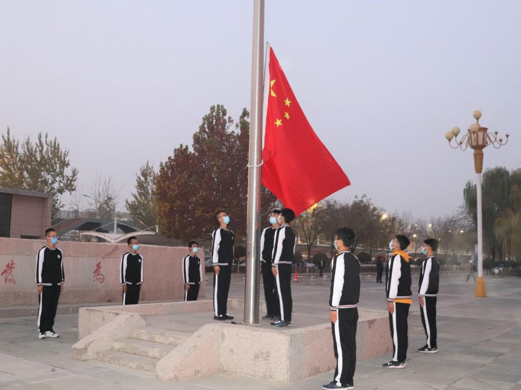 在贺兰山校区德勤楼前广场举行升国旗仪式,扑克游戏
