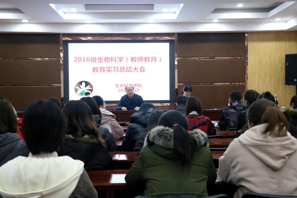 副院长梁文裕教授、各实习点指导老师及2016级生物科学专业(教师教育方向)全体学生参加了会议。大会分两个阶段进行,上午各实习小组交流汇报,下午进行实习生汇报讲课。