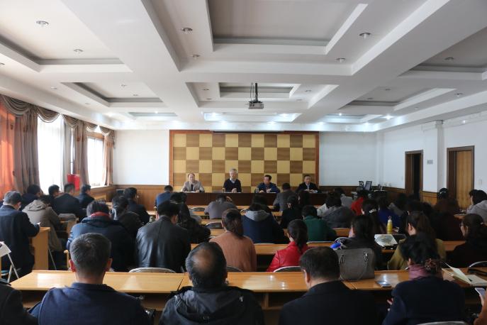 二楼报告厅,召开新学期全体教职工大会。会议由院党委书记沈岩东主持,院领导及全体教职工参加了会议。