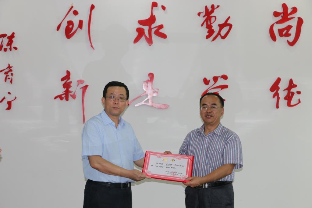 与宁夏回族自治区兽药饲料监察所、宁夏动物疾病预防控制中心、银川市金凤区疾病预防控制中心、银川中铁水务集团有限公司水质监测站等四家单位签署了共建教学实习基地协议,并为7位用人单位技术人员颁发了“双师型”兼职教授聘书。