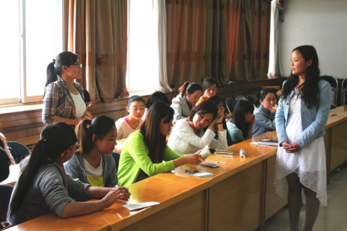 二楼报告厅举行“祝福宁大,感念师恩”主题班会,校领导许兴副校长和扑克游戏