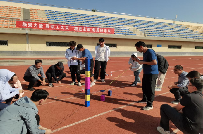 在邓光存书记的带领和全体参赛老师的共同努力下,顺利完成了铺路搭桥、趣味汉诺塔、手忙脚乱、合力筑塔、重走长征路、电臀达人、快乐大冲关等比赛项目。经过一个下午的激烈争夺,扑克游戏