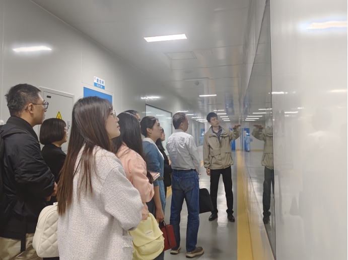 宁夏西麒麟生物科技有限公司总经理王传洋陪同邓光存一行考察了冬虫夏草菌粉生产车间,实地观摩智能化发酵工艺与生产流程,深入交流技术创新成果。邓光存书记对企业现代化管理体系和全产业链发展模式给予充分肯定,并指出校企合作需立足产业实际,加强应用型人才培养。