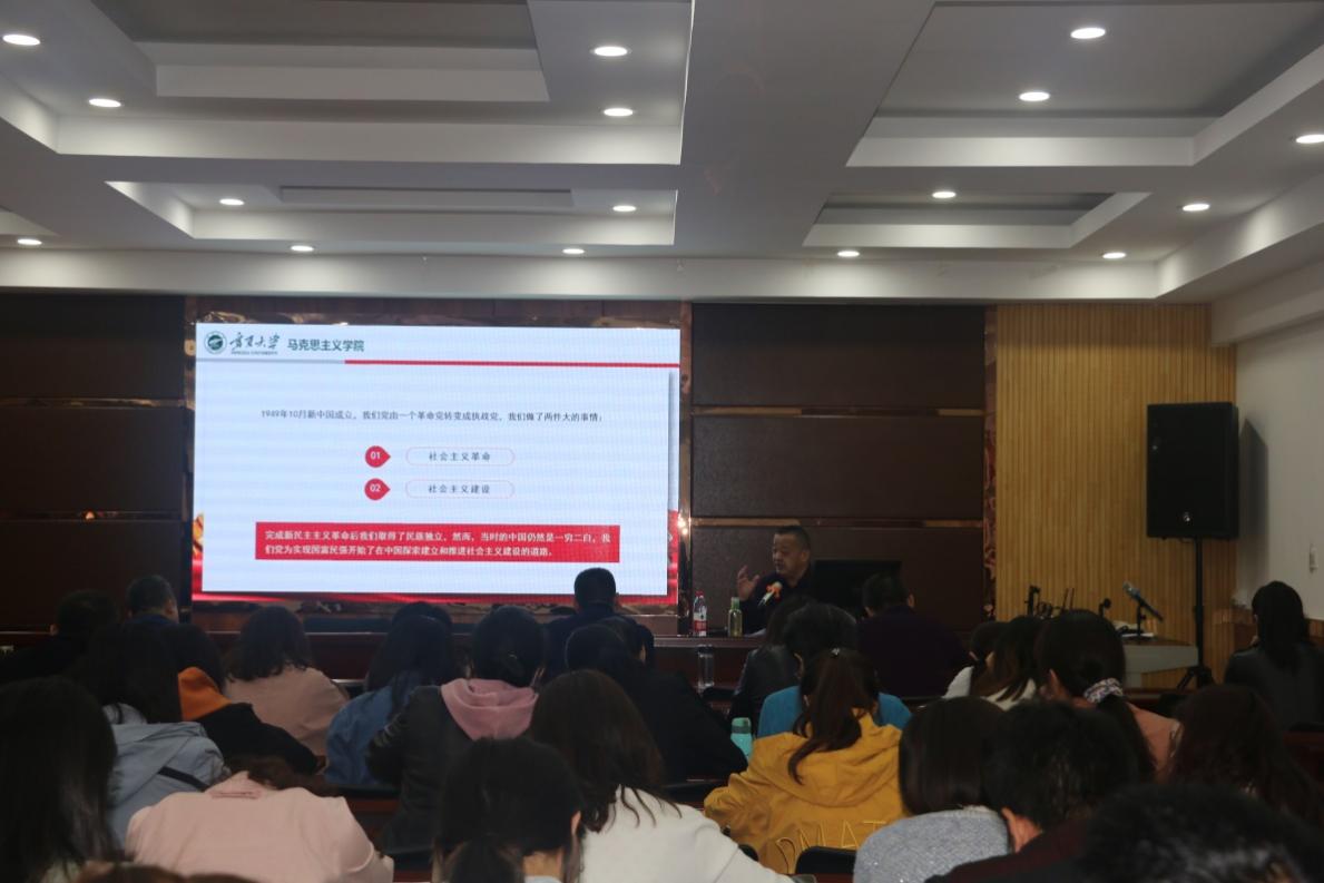 围绕中国共产党的光辉历程,刘晞平教授运用马克思主义唯物史观,结合自身丰富的教学实践和理论研究,以“百年征程波澜壮阔-学党史,悟思想,办实事,开新局”为题,从“学习党史具有重要的现实意义,学好党史要把握历史发展总脉络,中国共产党百年历程与启示”三个方面进行了宣讲。讲座主题鲜明、思想深刻、内涵丰富,既有理论上的高度,又有实践上的指导。与会党员教师表示,讲座很有必要,内容充实,发人深思。我们要通过党史学习教育“明理、增信、崇德”,在学思践悟中增进“听党话、跟党走、感党恩”的思想自觉。