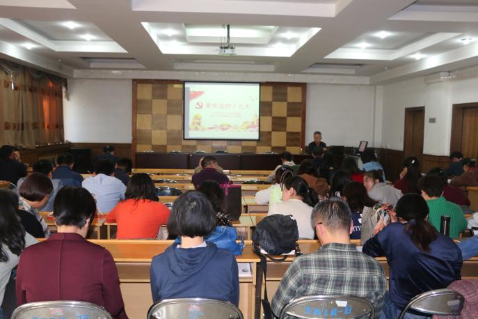 二楼报告厅院举办“十九大精神”和《新党章》专题讲座,沈岩东书记为全院教职工做了“十九大精神”学习专题辅导,对新党章进行了深度解读。