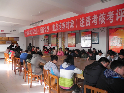 首先按照述责考评考核的程序,17名预备党员从学习、工作、对党的认识等方面,阐述自己成为预备党员这一年以来所取得的收获,并提出今后应该努力和前进的方向。同学们表态,成为一名预备党员之后,更要严格要求自己,以身作则,坚定政治立场和理想信念,在同学中树立起大学生党员的良好形象,影响并团结广大同学共同进步。随后进行的群众评议,与会同学对预备党员进行了客观、真实的评议,既肯定了成绩,又指出了存在的不足。最后按照述责考评要求,从理论、专业学习、校纪校规执行、发挥党员先锋模范作用、积极参加文体活动情况等方面进行了公平、公开、公正的民主测评,真实的反应了每个参加考评同学的具体情况。