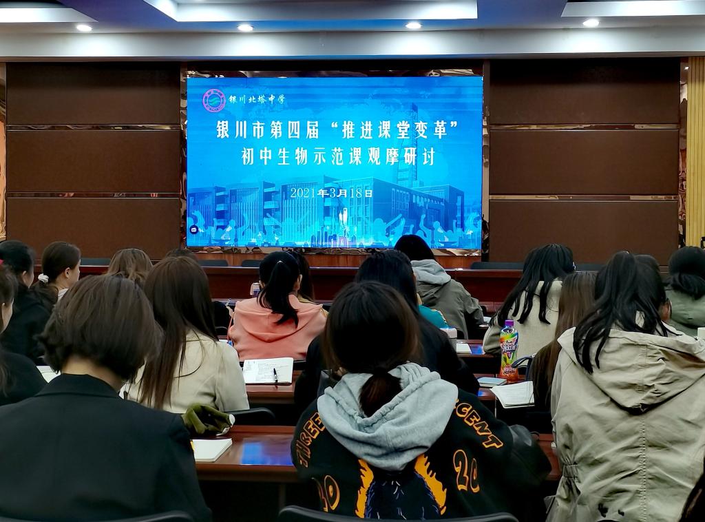 在北塔中学现场观摩的同学,还参与了交流研讨活动,王琼同学“对比过去与现在初中生物课堂”的发言,受到了银川市教科所生物学科教研员王全斌老师和在场教师的一致好评。