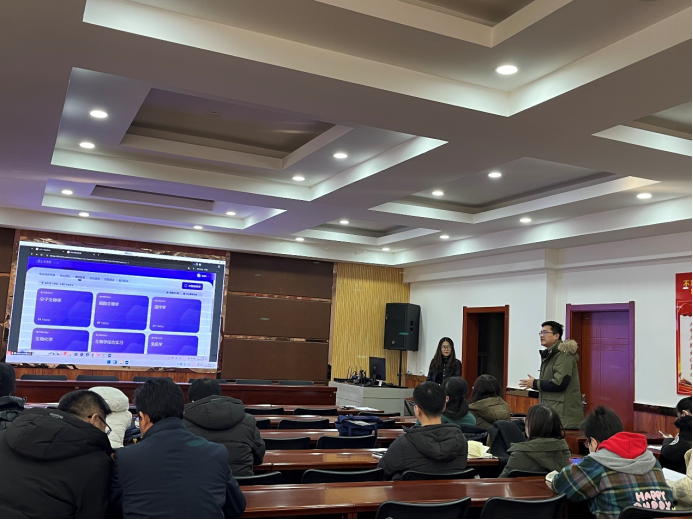 李乐副院长邀请智慧树网顾问工程师柴啸天介绍了生物科学专业知识图谱建设的核心内容、当前建设成果及基于图谱的教学运行情况。