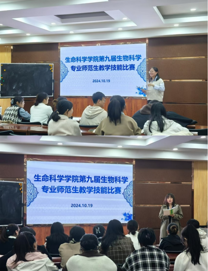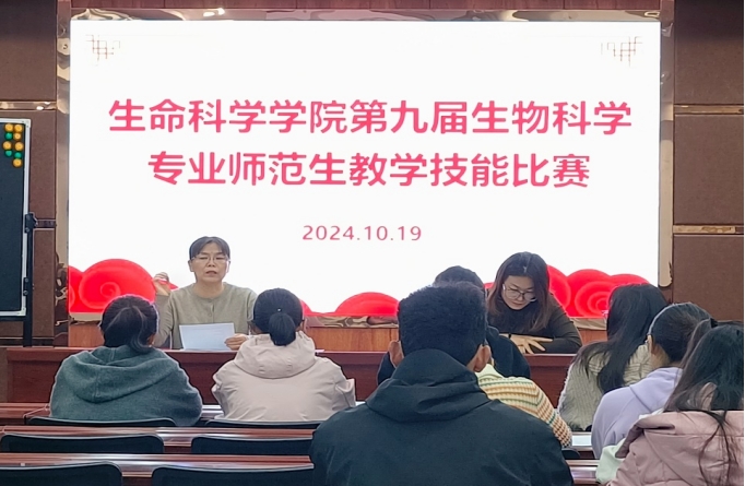副院长李乐和师范教育教研室主任周续莲主持,参赛选手为19名2021级生物科学专业师范生。