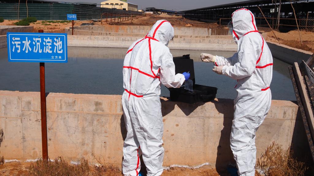 噬菌体研究团队在奶牛养殖场现场采集污水检测样品。银川电视台记者 宋志书 摄