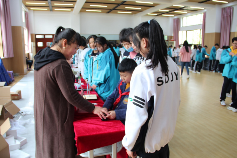 在张尊听主任的带领下,十余位老师克服路途遥远、时间紧张等因素,于4月9日一大早抵达锦园小学布展,上午九点半开始迎接学生参观展览。一个又一个有趣的科学小实验,使在场学生摩拳擦掌、跃跃欲试。在老师的引导下,同学们在玩中学、玩中做、玩中悟,极大地激发了孩子们的创新思维以及探究科技的兴趣和热情。