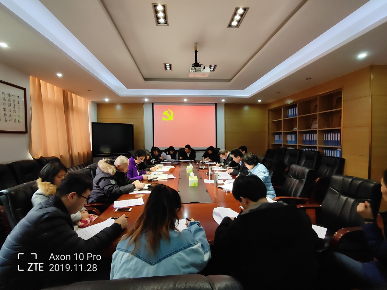 11月28日上午,扑克游戏 中心党支部召开“不忘初心、牢记使命”主题教育再深入学习活动。党支部副书记赵华荣同志主持会议,组织大家学习了《关于做好“不忘初心、牢记使命”主题教育有关工作的通知》、《中国共产党第十九届中央委员会第四次全体会议文件汇编》以及《中共中央关于坚持和完善中国特色社会主义制度、推进国家治理体系和治理能力现代化若干重大问题的决定》等文件。