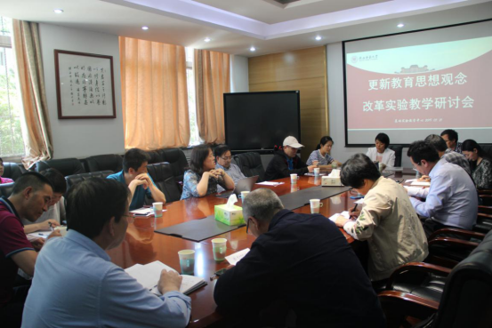 为全面贯彻全国教育大会和扑克游戏 第十一次党代会精神,进一步落实“以本为本,学生为主”的本科教育理念,推动扑克游戏本科教育教学改革,切实提高本科实验教学质量,按照扑克游戏 “本科教育思想观念大讨论”活动要求,5月21日下午,扑克游戏 中心组织召开“更新教育思想观念,改革实验教学”研讨会。教务处、实验室建设与管理处有关领导,化学化工扑克游戏 、物理学与信息技术扑克游戏 教学副院长,各相关扑克游戏 教师代表及扑克游戏 中心各学科负责人和实验技术人员等参加了会议。会议由中心副主任赵华荣主持。