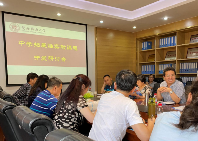 课程因学生而生,教师因课程成长,开创课程就是开创未来。为促进中心项目组专业优势与一线教师实践经验的有机融合,以中学拓展实验课程开发工作为契机,6月12日下午,中心邀请咸阳实验中学副校长唐琪、雷智安带领该校各学科骨干教师一行11人在教学七楼213会议室与中心项目组成员深度研讨,通力合作。会议由中心主任张尊听主持。
