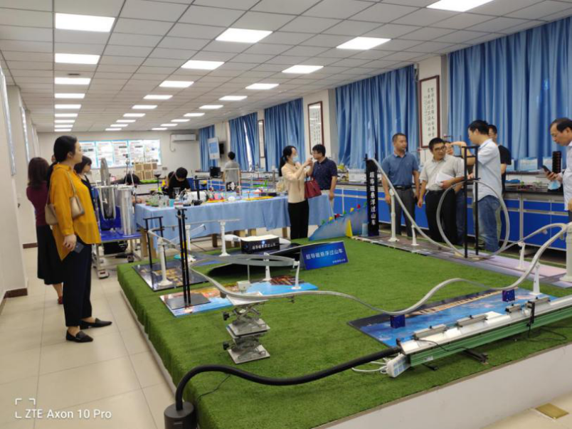 在中心副主任赵华荣、办公室主任闫生忠等相关人员陪同下,付主任一行首先参观了食品、生物、化学等学科实验室,并与学科负责人及实验员围绕如何开好实验课进行了深入细致的交流。接着,参观了科学教育仪器研发中心,认真听取了李世荣老师对部分仪器基本原理、研发背景、研发过程、推广应用、专利申请、获奖情况的介绍,仔细观看了张宗权正高级实验师团队研发的光学科教仪器、秦健副教授团队研发的创客教育系列机器人、白云山教授团队研发的凝固点测定仪等仪器、杨万民教授团队研发的超导磁悬浮类科教仪器、张玉梅教授团队研发的人工智能虚拟现实科教仪器的现场演示,对扑克游戏师生自主创制的科教仪器表现出浓厚的兴趣,不时拿出手机拍照,留下精彩的瞬间。
