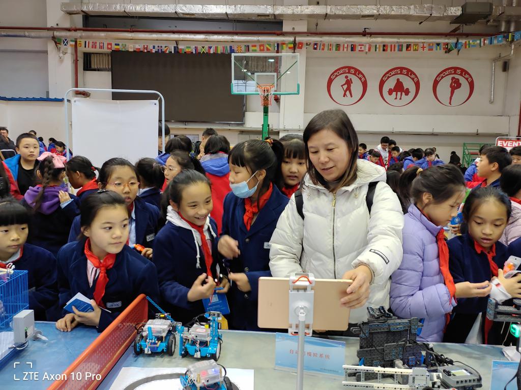 在彭菊芳老师的带领下,张宗权、强雪、马志爽、李世荣老师克服路途遥远、时间紧张的不利因素,于11月20日上午抵达经开一中布展,中午1点开始迎接学生参观展览。活动互动性强,学生兴趣浓厚,老师讲解生动,取得了很好的效果。本次活动,我中心所提供的科教仪器接近科技节展品总数的一半,以展品数量最多、学科涉及面最广、学生参与度最高等特点成为了科技节最受欢迎的单位,得到了主办方和学生们的高度评价,也为中小学开展科普教育、培养学生创新精神和实践动手能力提供了很好的平台。