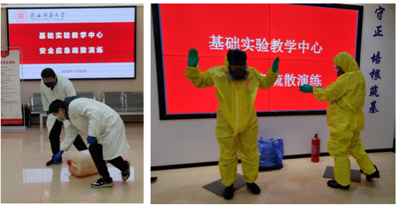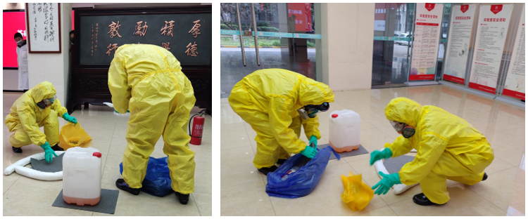 结合中心实验室安全管理实际及安全事故风险源,此次演练设置火灾紧急疏散、化学品起火灭火及废液洒漏紧急处置等三项实战演练内容。
