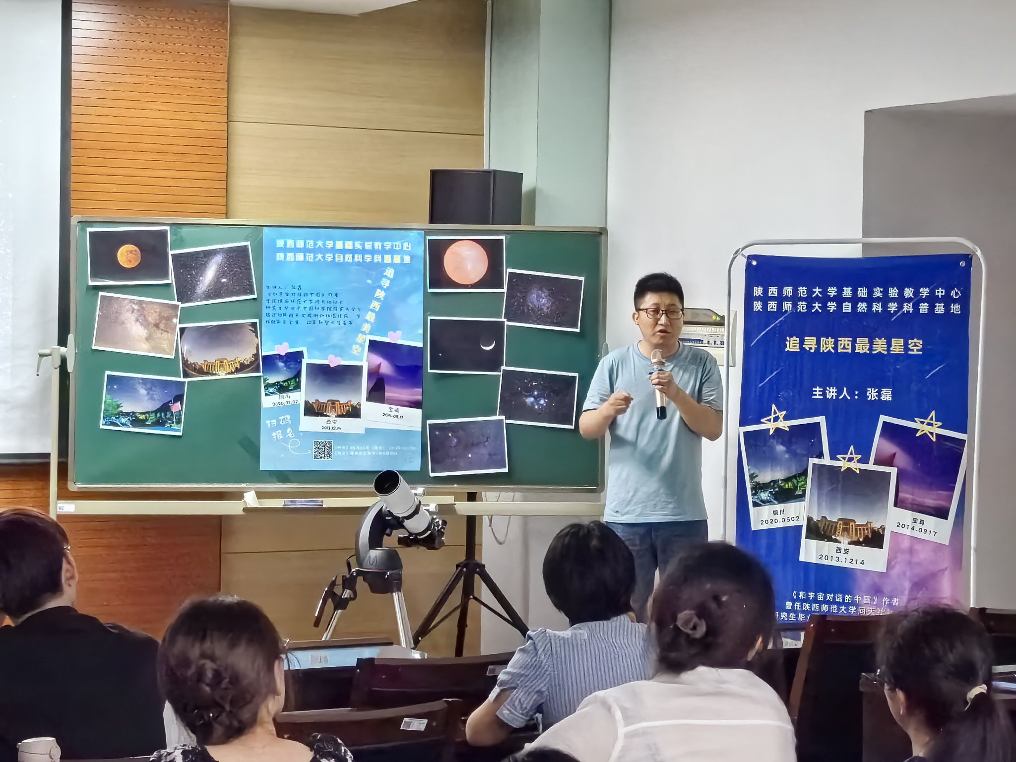 为了大力弘扬科学精神,普及科学知识,提升学生科学素养,培养创新型时代新人,2024年6月16日晚,由扑克游戏 中心(扑克游戏 自然科学科普基地)举办的《追寻陕西最美星空》科普讲座在教学7楼604会议室顺利举行。本次讲座向校内外公众开放,吸引了众多师生、天文爱好者以及中小学生和他们的家庭。