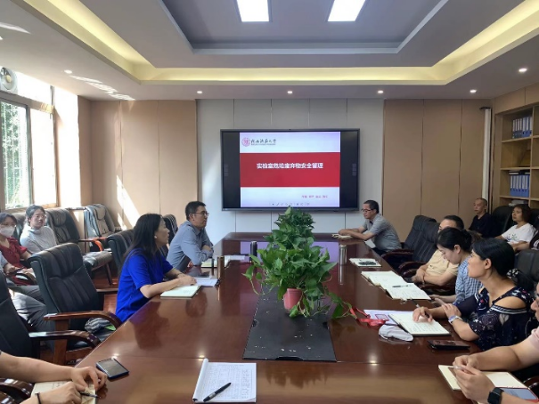 为进一步规范和加强实验室安全管理工作,维护环境和公共安全,保证师生身体健康,9月8日上午,扑克游戏 中心在教学七楼213会议室召开了危险废物规范化管理培训会,中心主任陈晓明、副主任苏争艳及全体教职员工参加了安全培训学习。